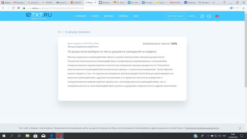 Проверка через Etxt особо никак не поможет. Вот только проверил текст из свежей диссертации. Взят отсюда со с. 43: https://disser.spbu.ru/files/disser2/1637/aftoreferat/gnbt0km9Yw.pdf Как видите, EtXT воспринимает его как 100%, хотя это 100% плагиат.