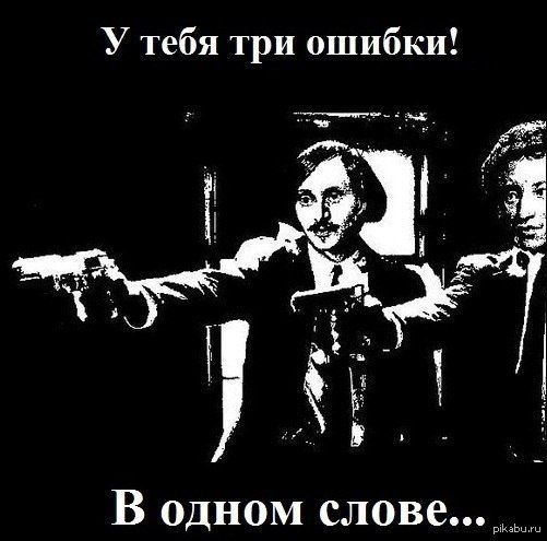 Мне частенько заказывают "депломы", "курсавые роботы", "зодания", "могистерские десиртации" и т.д. и т.п. Несть им числа. Я совершенно спокойно отношусь к случайным опечаткам, использованию режима "Т9", ошибкам в сложных словах типа "идиосинкразия", да даже к неадекватной расстановке запятых в сложных предложениях на пару абзацев. Но вот такое вот бесит реально до трясучки. "Не научили в школе" - вообще ни разу не оправдание. Как-то же научили, что есть нужно не руками, зад после туалета подтирать (причем не собственной майкой), зубы чистить и т.д. Ну не может, имхо, нормальный психически здоровый НОСИТЕЛЬ языка писать "в крации", "выйграть", "вообщем", "а пачиму ты не хочишь жить в этой странне?" (последнее - из оффлайн-переписки с заказчиком буквально позавчера). Беееееееесит!