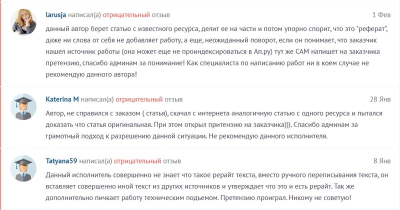 Почему нигде не написано, что будет, если упоминать тут разные сайты Авторов с цифрами? Справедливости ради надо сказать, что при работе там вышелписанных проблем у меня не было, потому что рейтинг автора, регистрация просрочки и не удаляемые через один отрицательные отзывы хотя бы примерно отражает, чего от исполнителя можно ожидать.