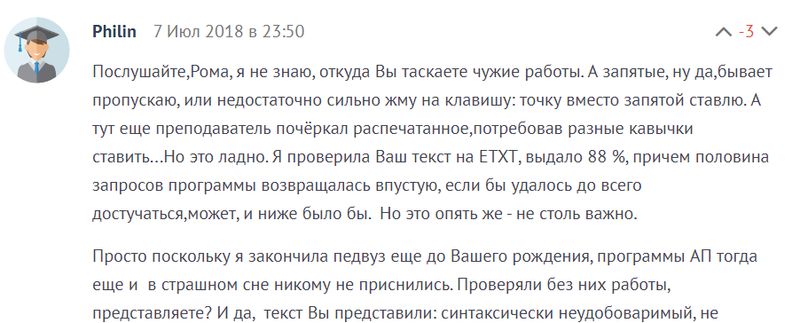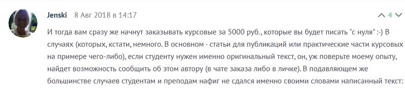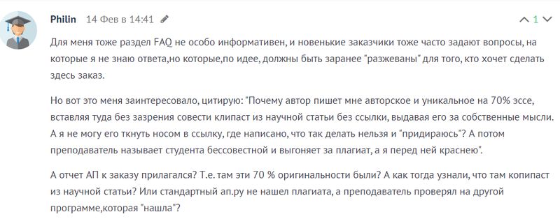 Почему просроченный заказ на сайте можно загрузить хоть через год и иногда без каких-либо санкций? Ну подумаешь, через день выложу, не предупредив заказчика? Почему нигде не прописано, что ВСЕ работы по умолчанию должны оформляются по ГОСТу, а не "я художник, я так вижу". Почему автор пишет мне авторское и уникальное на 70% эссе, вставляя туда без зазрения совести клипаст из научной статьи без ссылки, выдавая его за собственные мысли. А я не могу его ткнуть носом в ссылку, где написано, что так делать нельзя и "придираюсь"? А потом преподаватель называет студента бессовестной и выгоняет за плагиат, а я перед ней краснею.