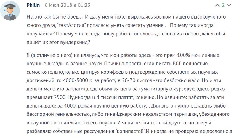 Почему же в феврале человек пишет работы сам, а в июле уже брезгует писать самостоятельно по таким ценам? Думаете, эксперт деградирует? Нет, тут всё гораздо глубже спрятано. Дело в том, что тырят работы Philin - очень уж они хороши: