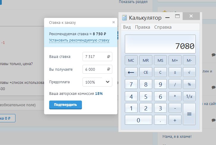 Добрый день. У меня вопрос, есть Pro, т.е комиссия 18 %. На калькуляторе считаю. хочу получить 6000, т.е надо делать ставку 6000+ 18 %.правильно? Но это 7080 руб.. а никак не 7317..Или у меня на ВИП статусе комиссия 22 %?