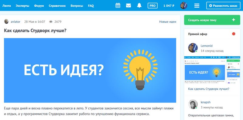 Возможно, то, что я написала - очень наивно, но я всегда выступаю за масштабные изменения). Если администрация спрашивает: "Как сделать Студворк лучше", то для меня это равноценно вопросу "Как сделать так, чтобы Вы и Мы больше зарабатывали".