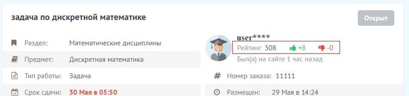 Предвижу возражение, что тогда студенты не пойдут, так как им не захочется рисковать 30 рублями на незнакомом сайте. Чтобы этого не было, с новых заказчиков брать залог не нужно, а только с тех, за кем уже числится, допустим, 5 отмененных заказов. Если посредник хочет разместить заказ без залога, пожалуйста, может зарегистрироваться по новой, но тогда пусть не жалуется на предоплату.
