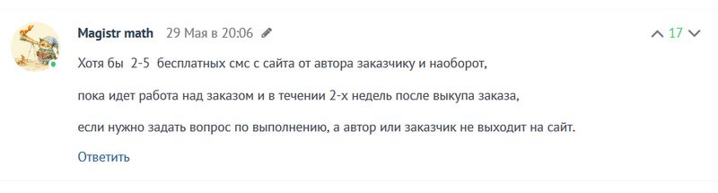 И смысл моего предложения сводился к следующему: когда заказчик размещает заказ, с его счета должна списывать определенная сумма (можно символически брать 30 руб на оплату услуг сайта - заказ то он разместил на сервисе, который требует вложений), но данная мера будет выступать некоей гарантией того, что заказчик действительно настроен на выполнение заказа, а не сравнивает например цены на разных сайтах.