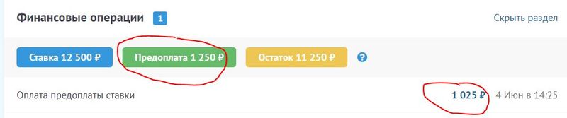 1. Ставлю ставку в заказе 10000 руб. Предоплата 0 руб