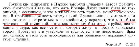 Троцкий тоже про осетинское происхождение Сталина писал, вот Таландар раскопал в гугле, что 2016 году генетическая экспертиза внука вождя подтвердила наличие осетинских генов. :))))