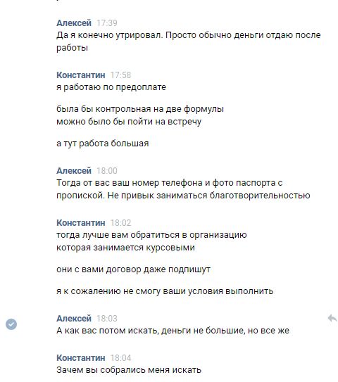 такие потом просят им еще материал разжевать и в рот положить, т.е. бесплатно поработать репетитором)) это маленькие начальники где то в Чукотке, это они так учатся. Я за 20 лет стажа их с первого взгляда узнаю. Причем, обычно они находят меня по сарафанному радио, т.е. кто то им меня советует, а они вот так вот начальствуют и перепроверяют))