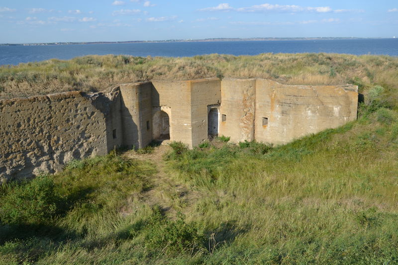 В 1907 году посредине острова была сооружена "крепость-мишень" с лабиринтом блиндажей. Остров в это время использовался как артиллерийский полигон для испытания дальнобойной морской артиллерии. Ныне над остатками этих сооружений, ошибочно принимаемых за бывшую турецкую крепость, стоит навигационный знак в виде четырехгранной металлической фермы высотой около 12 метров и установлен маяк, который горит в темноте зеленым проблесковым огнем и указывает мореплавателям правильный курс.