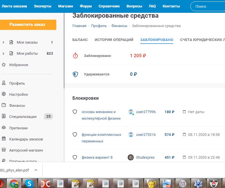 У меня на странице "Финансы" имеется вот такой список блокировок: