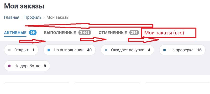 Перейдя в разделы «Мои заказы» и «Мои работы», вы по-прежнему можете видеть все свои активные заказы.