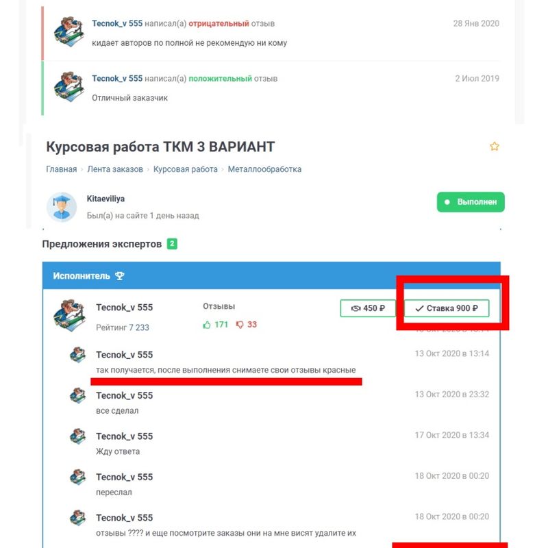 Мне вот интересно, почему администрация позволяет процветать персонажам с количеством отрицательных отзывов 70-80-100 ?? Может пора ввести какие-то ограничения? Принудительную блокировку? Зачем они нужны.. Особенно много подобных аффтаров-"правоведов". Лезут в каждый заказ, снижают рейтинг и доходы сайта, вводят в заблуждение неопытных пользователей, предлагая написать маг. диссер с оригинальностью 80% по АП ВУЗ за 3 тысячи рублей. Потом юзеры пишут 101-й гневный отзыв и уходят на другой ресурс. Админам - дополнительная головная боль в виде бесконечного потока претензий и возврата денег.