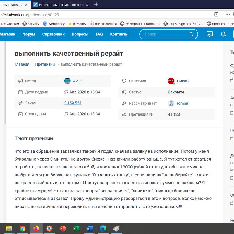 В этом плане Студверк всегда идет навстречу. Я к тому, что если заказчик начинает что-то там еще по требованию студента просить, например, сделать то, о чем сразу не указано в задании - администрация всегда дает четкий ответ. Или платная доработка (от которой автор может отказаться) или же не имеет права ничего требовать более, чем указано изначально в ТЗ.
