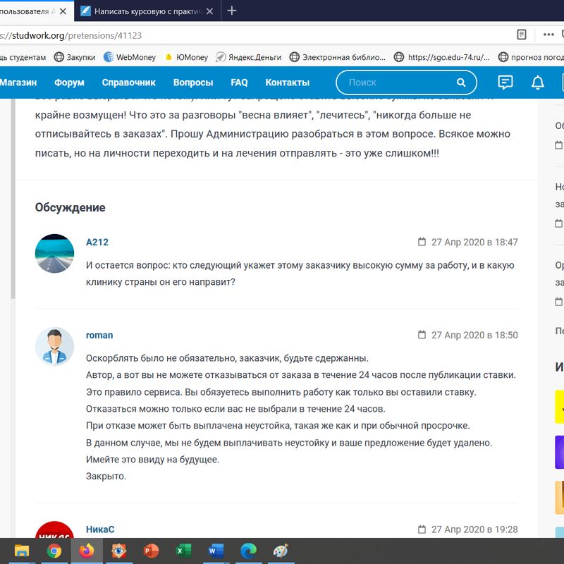 Но я знаю биржу, там они больше по текстам для сайтов работают, хотя и курсачи там тоже заказывают (название не буду писать, чтобы не воспринялось как реклама)... Так вот особенно споры идут на той бирже по уникальности. Вроде процент нужный укажут, а потом заказчик "так надо по адвего, по текст ру, контент вотч еще проверить".....И администрация там говорит: "ну, конечно, надо чтобы по всем системам текст был уникальный, не находило совпадений". Сколько с ними там не спорил, не ругался, мол, почему это требование заказчик сразу не указал - бесполезно. Они там просто конченные - других слов нет. Советуют , мол, не хотите дорабатывать - откажитесь, вернем рейтинг. А толку, когда заказ уже отправлен клиенту....