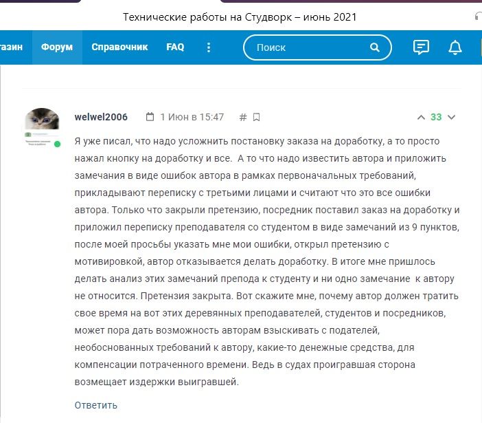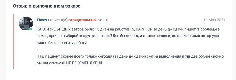 "Заработали "легкие" деньги: "По изначальным требованиям работы была выполнена в 100 процентном объеме" и всё? а дальше можете "идти лесом" переделывать не буду?. Но это же услуга за которую, я плачу свои деньги, и хочу, что бы она была оказана качественно."У вас нет отрицательных отзывов, потому что подаете претензии на них? Заказчики сами виноваты, что не правильно или по не знанию оставляют заказ? "Спасибо", но больше здесь заказывать не буду, и отрицательный отзыв могут удалить, но студентов одного учебного заведения в виде заказчиков, сайт точно потерял.