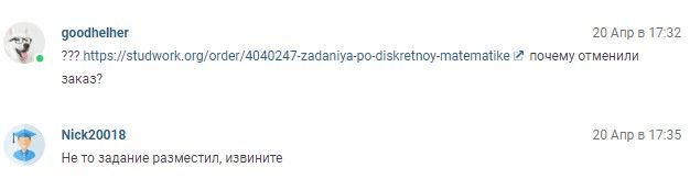 Тема "Функция снятия заявки на исполнение" закрыта, нужно было дополнить тот случай. Смотим на даты, студент я думаю был счастлив через 3 недели. Продолжайте, господа посредники выбирать по цене. Ответа с моей стороны больше не было.