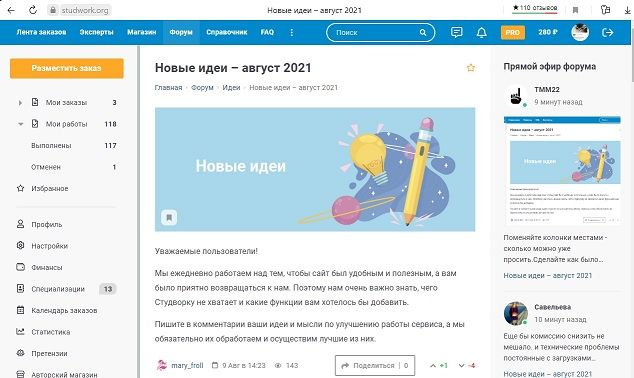 ....Мы ежедневно работаем над тем, чтобы сайт был удобным и полезным, а вам было приятно возвращаться к нам. Поэтому нам очень важно знать, чего Студворку не хватает и какие функции вам хотелось бы добавить.....