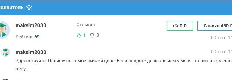 Зарегался на этом сайте несколько месяцев назад. Ну и что (ни одного заказа пока не получилось взять), работать за бесценок я не буду из-за того, что представляю что и сколько стОит (работаю на другом аналогичном ресурсе, просто там затишье летом было) Только ради рейтинга свое время тратить за копейки и ждать когда "рейтинги" подрастут ?? Все равно находятся те, кому все-равно, во сколько они оценивают свой труд, и предложат еще меньше.....