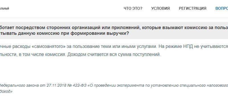 Комиссия – это личные расходы «самозанятого» за пользование теми или иными услугами. На режиме НПД не учитываются расходы, связанные с ведением деятельности, в том числе комиссия. Доходом считается вся сумма поступлений.