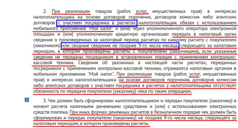 а у нас на бирже заключается агентский договор, договор комиссии или договор поручения? А не попадаем ли мы под пункт 3, когда чек должен быть сформирован в момент расчета, т.е. когда деньги зачисляются на баланс исполнителя, т.е. на наш кошелек внутри биржи. По сути это уже наши деньги, просто мы их еще не вывели себе на карту...