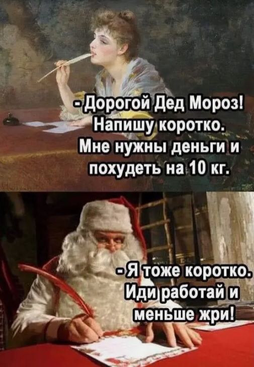 Дорогой Дедушка Мороз! В прошлом году ты обещал моим детям принести мешок послушания и примерного поведения. Но, видимо, мешочек попался дырявый, и по дороге многое из него высыпалось. Пожалуйста, зашей все дырки и уже донеси то, что растряслось))) С уважением и надеждой на светлое будущее, мама двоих крокодилят))))