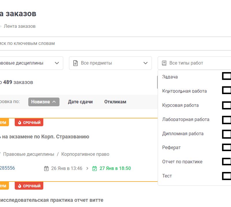 Уже писала в прошлой такой теме. Хорошо было бы добавить в фильтр по системе проверки уникальности еще и вариант "Без проверки" (когда поле в заказе осталось пустым), потому что, по сути, функция фильтрации по антиплагиату для многих бесполезна. Если выбираешь какую-то систему в фильтре, то только такие заказы и показывает, а те заказы, где уникальность не нужна или где заказчик указал требования в описании, а не в специальном поле, убираются из ленты.