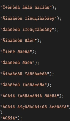 Добрый вечер,какой бы код не открывал от друзей ,все что введено кириллицей в коде ,лично у меня не отображается ,кто знает как это можно устранить ,заранее спасибо