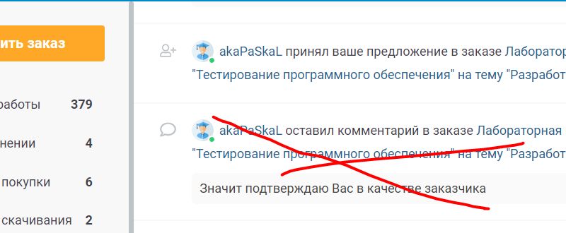 Имеет место баг с историей изменения заказа. Вот сегодняшний пример, заказ https://studwork.cc/order/4841170-dz-po-komplanu. Заказчик загрузил файл с заданием. У меня возник вопрос, он как-то ответил, неважно как, и, зачем-то, удалил файл. Ну, его право. Но, в истории это не отображается! В заказе сейчас файла никакого нет, а в истории написано, что загружен. Широкое поле для злоупотреблений.