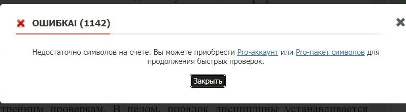 Попробовала зарегистрироваться и проверить 10 страниц текста. Сразу же выдает ошибку.