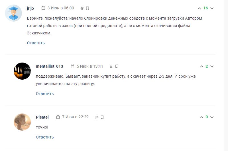 Заказчики требуют от авторов исполнения работы в заданный срок, пишут негативные отзывы в случае просрочки (и правильно делают), но вместе с тем, некоторые из них не считают нужным своевременно выкупить работу (мол, а чо такова та????).