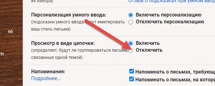Cпасибо, но Вы перепутали: я как раз с мэйл.ру ушла на gmail.)) Так что все в порядке, там я отключила цепочки, спасибо еще раз за совет. Вроде элементарщина: зайти в настройки и там посмотреть, но вечно руки не доходят - ознакомиться с "вообще", только когда спецы советуют...))