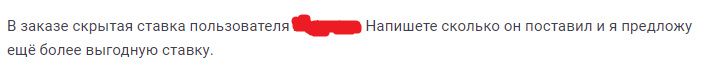 Я считаю, что скрытая ставка это само по себе воровство у тех, у кого есть про-статус. Я покупаю для того, чтобы видеть ставки всех исполнителей, а они, видите ли, скрываются.