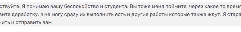 я вам советую смените шаблон свой на ваши ставки и оценивайте каждую работу индивидуально по требованиям заказчика, а не так как вам хочется. А то смотрю ваши отклики на заказы, там указано что антиплагиат.вуз, вы пишете что только по ап ру можете, так это уже не подходит. Пишете что цена за первую главу и что 2 и 3 главы также будут стоить, а вы уверены что в каждой дипломной работе 3 главы? И зачем оценивать каждую главу. Вы должны укахать цену сразу за всю работу, и указать сумму предоплаты, а выкладывать уже части за ту стоимость как вы договоритесь с заказчиком, либо пропорционально выполненной работы. А вы ставите одинаковый шаблон на все заказы не читая даже требований... Такое ощущение что не живой человек, а бот ставит цены и пишет одинаковые сообщения, не читая описания заказа и не просмотрев приложенные файлы.