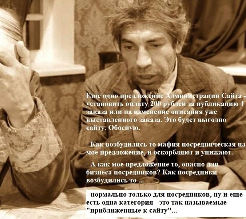 "И только те заказы которые кто то из настоящих Авторов уже точно берет в работу, только эти заказы сами Посредники оформляют на себя и перепродают настоящему Автору" - кто на ком стоял? (С)