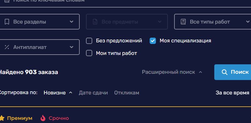 я бы хотела при оформлении заказов графу вуз. потому как я (например) работаю с 1 вузом в основном и хотела бы из многочисленной ленты брать свое)) а еще .. люблю делать заказы посредникам, меньше писанины... как на авито частные объявления и компании... чтобы у заказчика была возм-ть отметить прямой он студент или посредник - "компания".