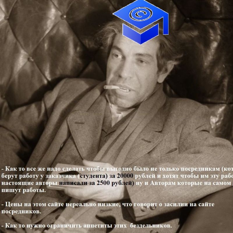 Как то все же надо сделать чтобы выгодно было не только посредникам (которые берут работу у заказчика (студента) за 20000 рублей и хотят чтобы им эту работу настоящие авторы написали за 2500 рублей) ну и Авторам которые на самом деле пишут работы. Цены на этом сайте нереально низкие, что говорит о засилии на сайте посредников. Как то нужно ограничить аппетиты этих бездельников. Кстати такая практика снижает общее качество работы, так как действительные авторы пишут за такие низкие цены - абы как (нет стимула)