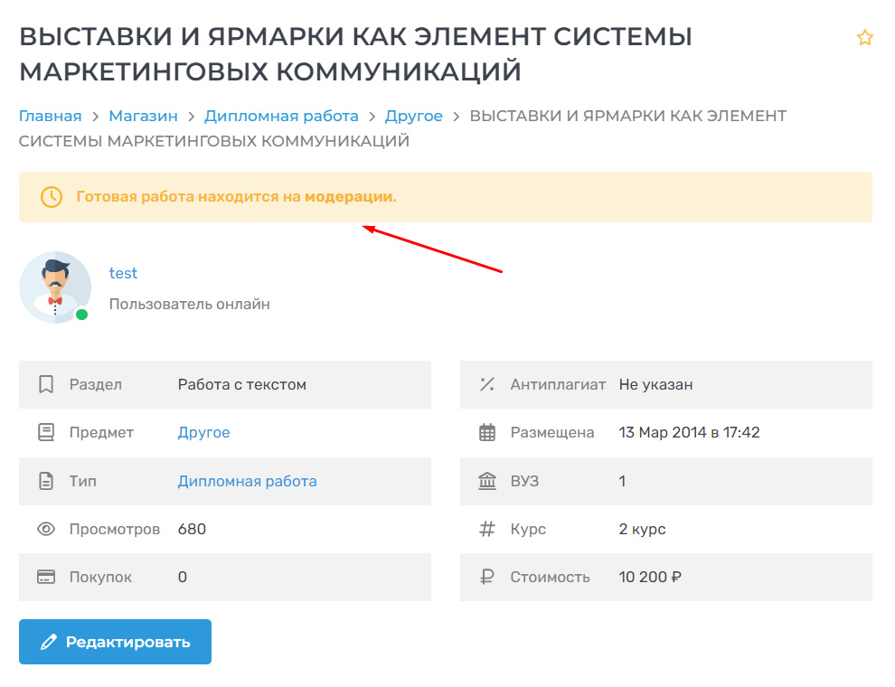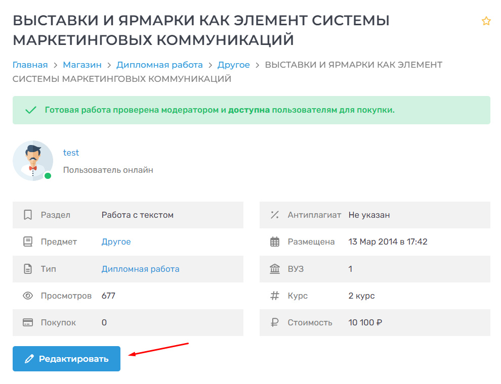 Рады сообщить, что с сегодняшнего дня вам доступна функция редактирования одобренных готовых работ в магазине.