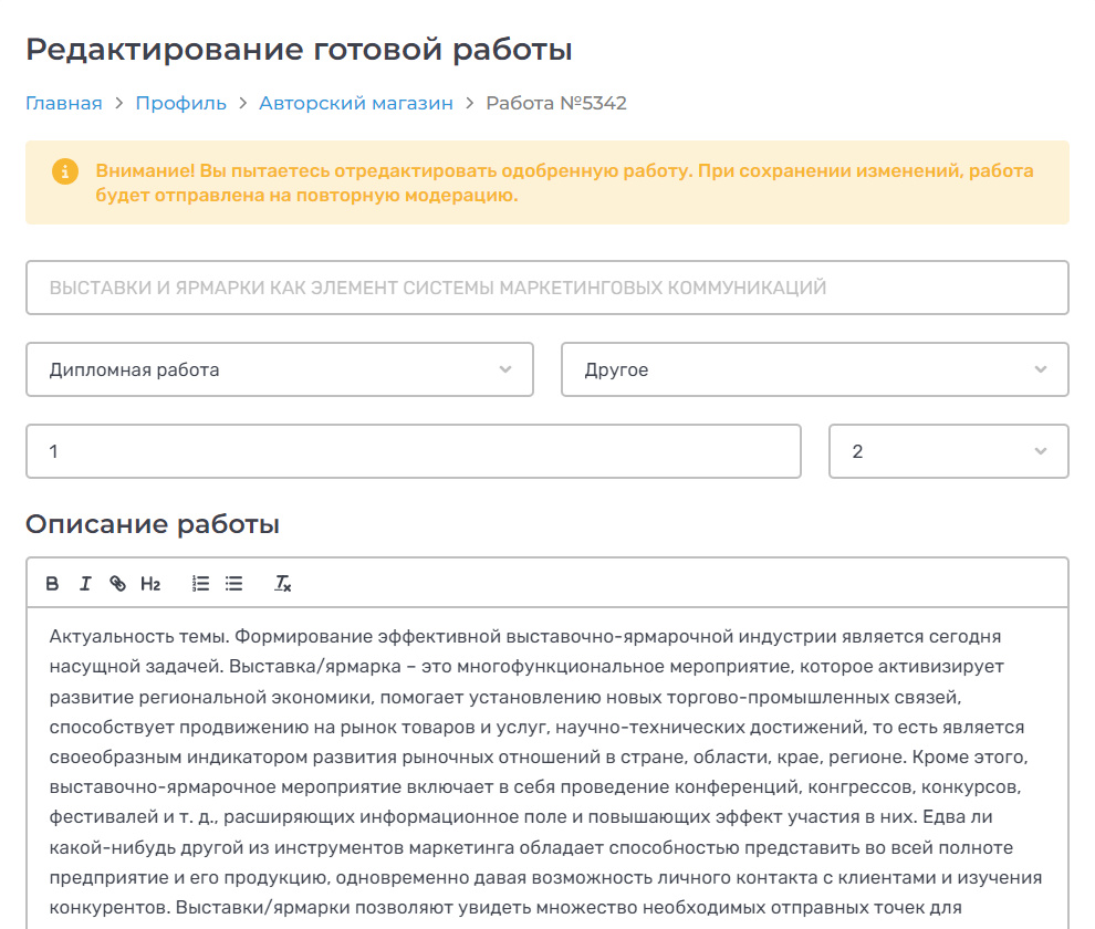 После этого, вы окажетесь на странице редактирования работы, где сможете внести необходимые изменения.
