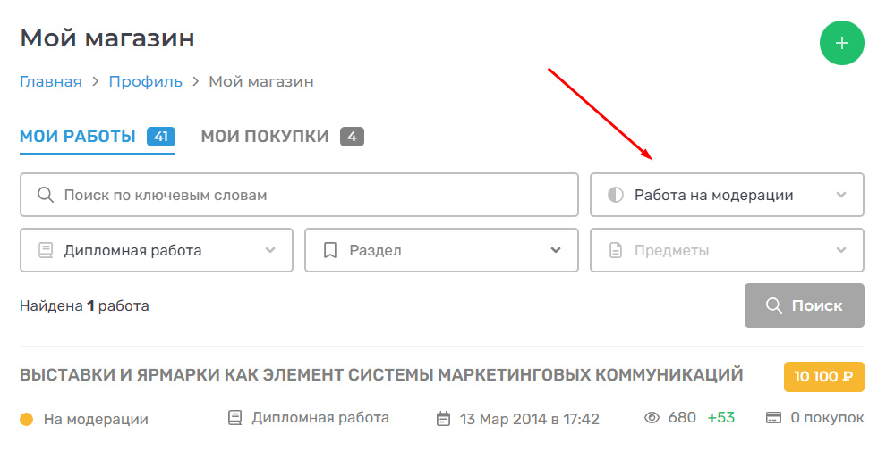 Отслеживать статус отредактированных работ можно с помощью нового фильтра в разделе "Мой магазин".