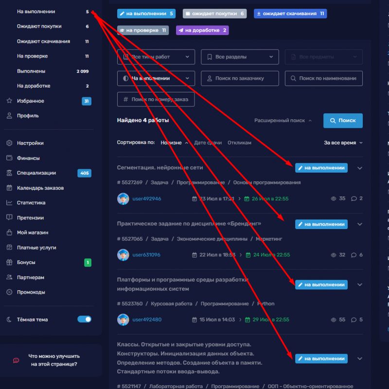 Плюсую. Проблемы с обновлением статуса заказов - загрузила выполненную работу - не отображается, что она из статуса "на выполнении" перешла в статус "ожидает покупки", работа была на доработке, загрузила выполненную работу, но не отображается, что она перешла в разряд "ожидает скачивания", проходит несколько часов пока текущий статус работ обновится... (((( В чем причина и когда ожидать исправлений в работе?