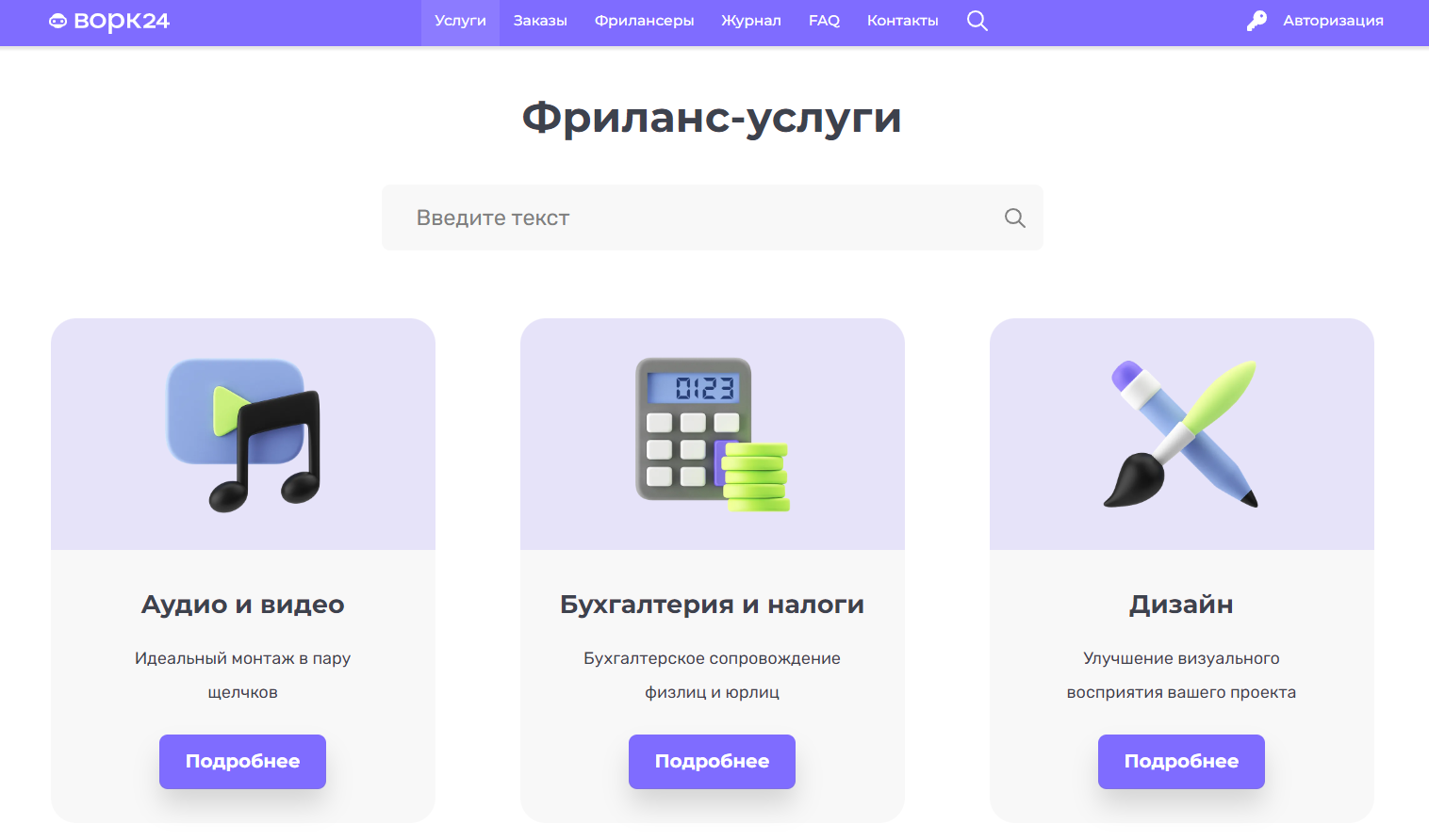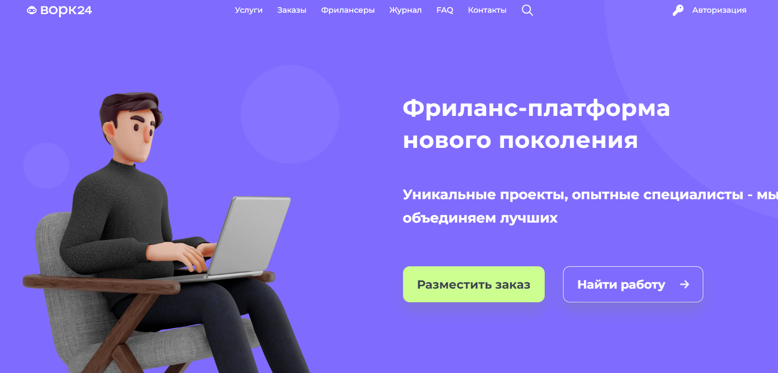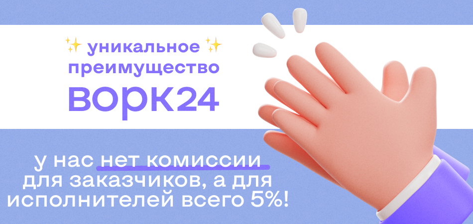 Ворк24 – это фриланс-биржа широкого спектра для безопасного и удобного сотрудничества исполнителей и заказчиков из разных сфер деятельности.