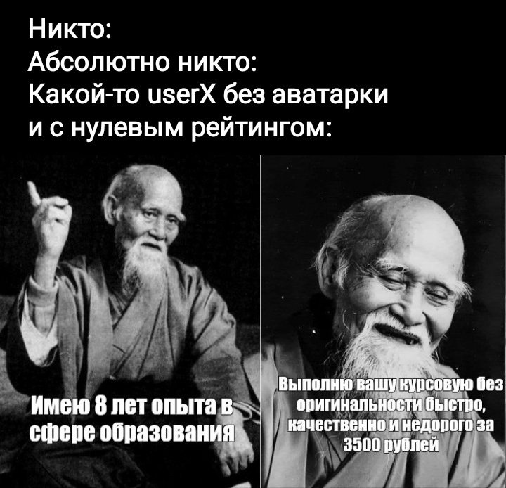 Вот самый настоящий мем студворка. До сих пор перечитываю под настроение. https://studwork.cc/journal/4338-otzyvy-na-sayte