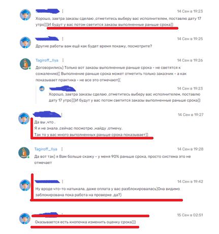 В подтверждение (чтобы не быть голословным) - вырезка (скрины) недавней переписки с клиентом, который обратил внимание на кол-во работ сданных раньше срока. И, отвечает добром на хорошо выполненные работы, с предложением увеличить срок заранее, чтобы работа считалось выполненной раньше срока. Но, по факту клиент даже не знал что надо что-то отмечать в заказе