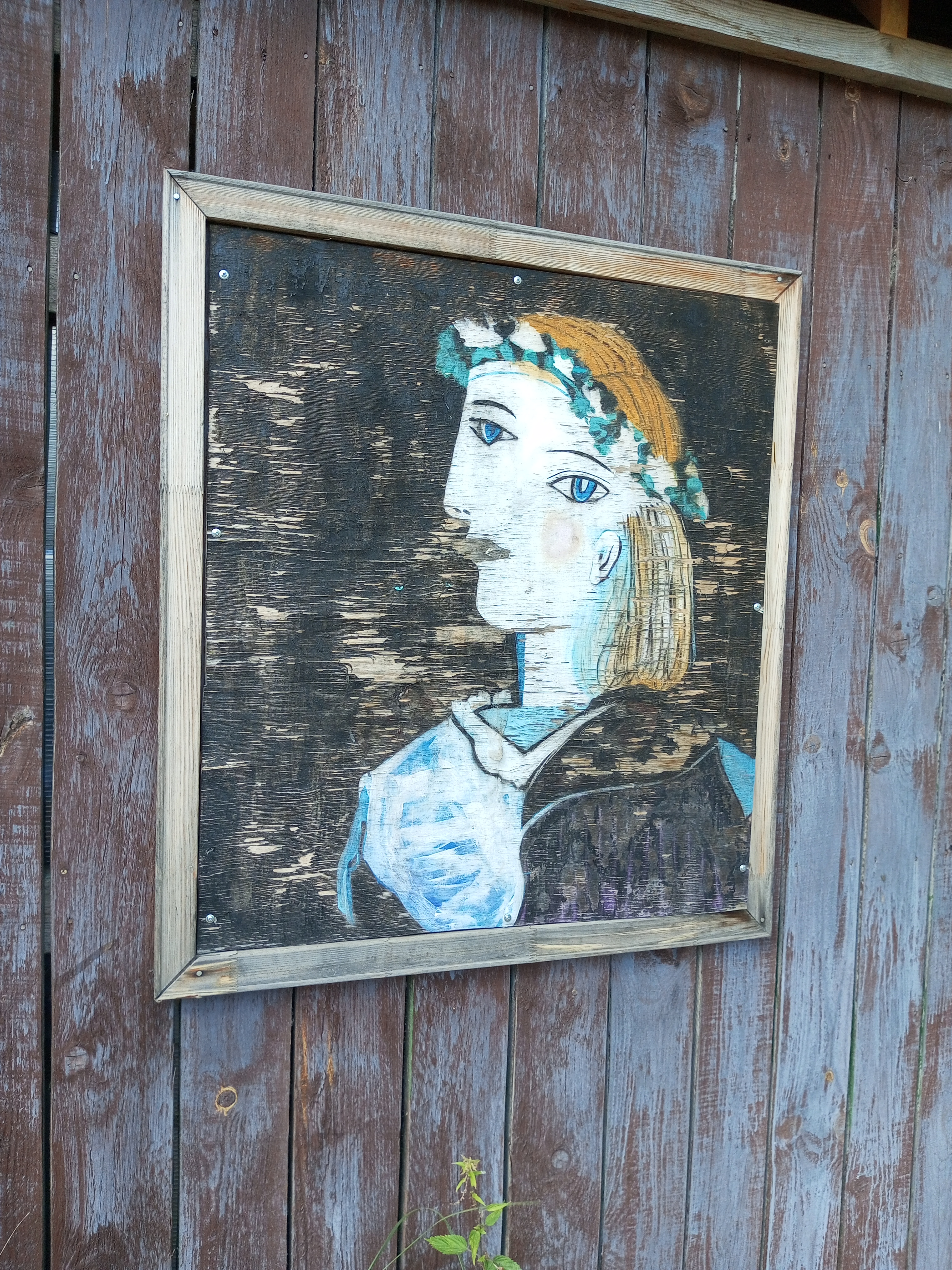 Гуляя по окрестностям городка, я случайно наткнулась на необычный дом-теремок с интересным оформлением. На карте никакой информации об этом доме нет, но похож он на дом художника, т.к. на фасаде здания висит множество картин. Очень долго рассматривала, хотела зайти внутрь, но не решилась беспокоить хозяев, так как это частный дом.