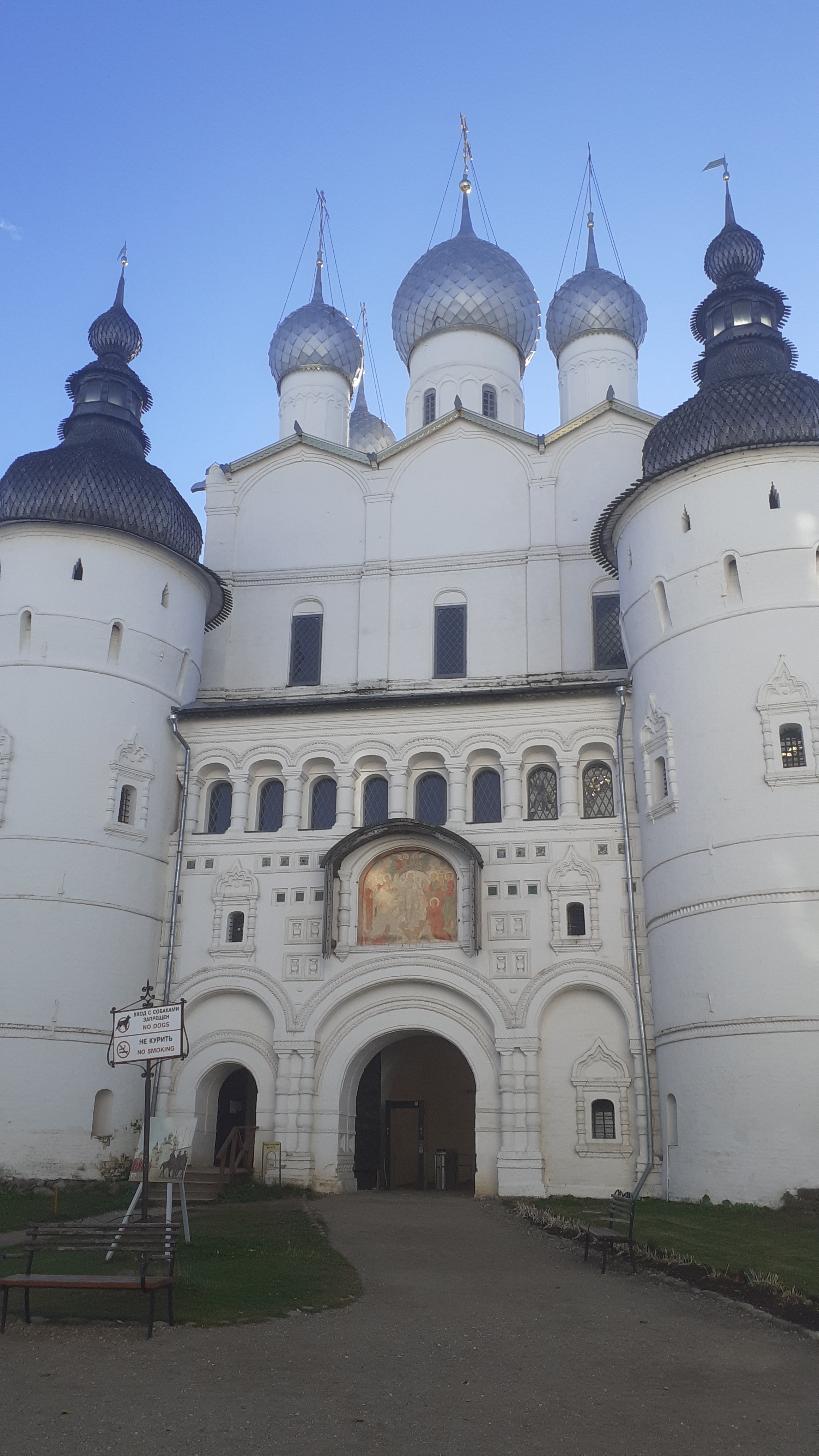 4. Потом, в Ростове Великом, восхитилась видами озера Неро, крупнейшего озера региона, и посетила Ростовский кремль, где снимали легендарный советский фильм «Иван Васильевич меняет профессию». На территории кремля расположены стенды с фрагментами из фильма в том месте, где происходит какое-либо действие киноленты.