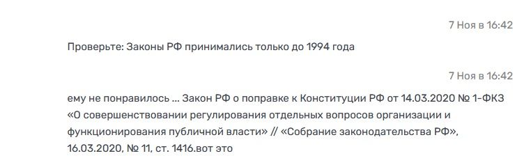 а еще бывает поставишь предыдущую редакцию НПА (из весенней сессии ГД, а не осенней, этого же года), а препод весь слюной изойдет, будто ему нпа в редакции 10 лет назад пишут