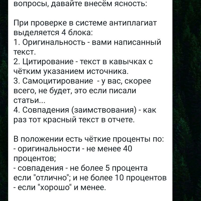 Недавно был случай. Делала рерайт кандидатской. По рекомендации. В основном просили переписать цитирования. Клиент проверял по главам, все устроило, все норм. Но через две недели пишет, что проверка итоговая показала намного меньший процент. Я попросила отчет. Он выслал его и работу. В общем он опять переписанные цитаты заключил в кавычки. И, конечно, же, проверка их посчитала неоригинальными и приписала в цитирование. Он разобрался. Писал работу сам, но вот с проверкой на а/п сложности. В плагиат пошел список 40 стр и вот цитаты. И никто не знает, как будут проверять и что будут считать за плагиат.