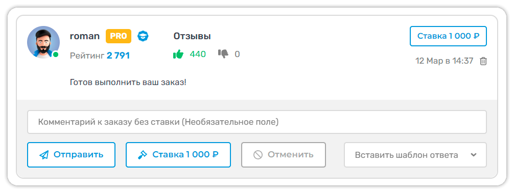 Такая возможность позволит получить соответствующую отметку в вашем профиле, тем самым повышая доверие со стороны заказчиков, а также за прохождение модерации на учетную запись будет выдан бонусный PRO-аккаунт!