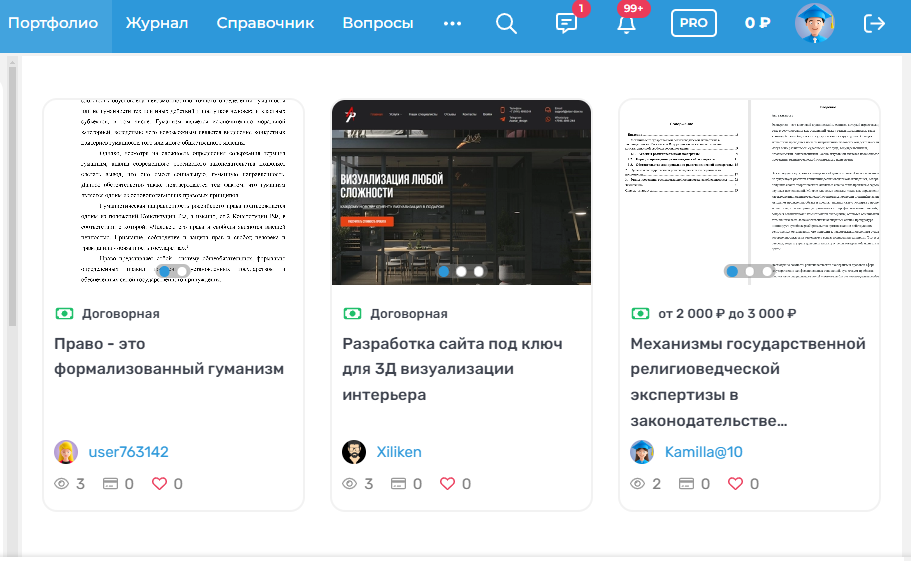 Раздел «Портфолио» на Студворк — отличный инструмент для начинающих авторов. Он предоставляет равные условия для всех пользователей, позволяя демонстрировать свои работы и получать отзывы, лайки и комментарии, что помогает сформировать репутацию.