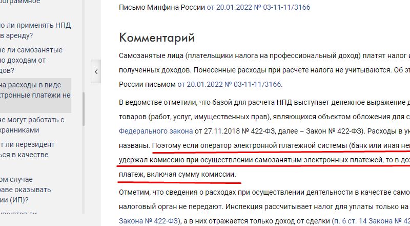Соответственно, при определении налоговой базы по НПД учитывается вся сумма полученного дохода. Расходы, понесенные самозанятым, учесть нельзя, Минфин.